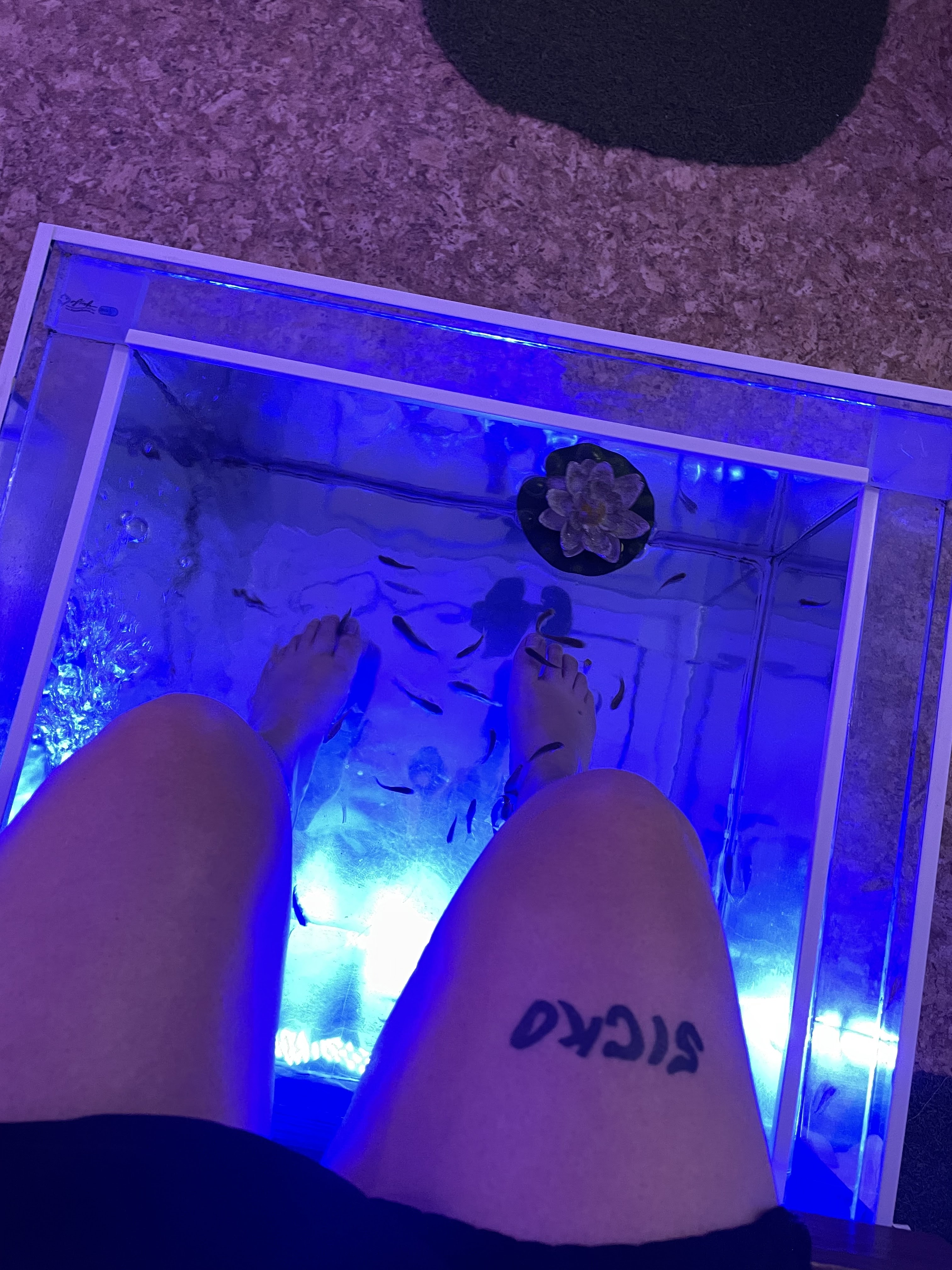 Superbe moment passé en famille (nous étions 7). Arrivée en retard, la gérante nous a accueilli avec le sourire et avec des explications sur comment ce moment allait se dérouler. 30 minutes pour 20 euros de fish massage. Relaxant et amusant en même temps. L'endroit est propre et la musique met dans l'ambiance. Je recommande 🐟🐠