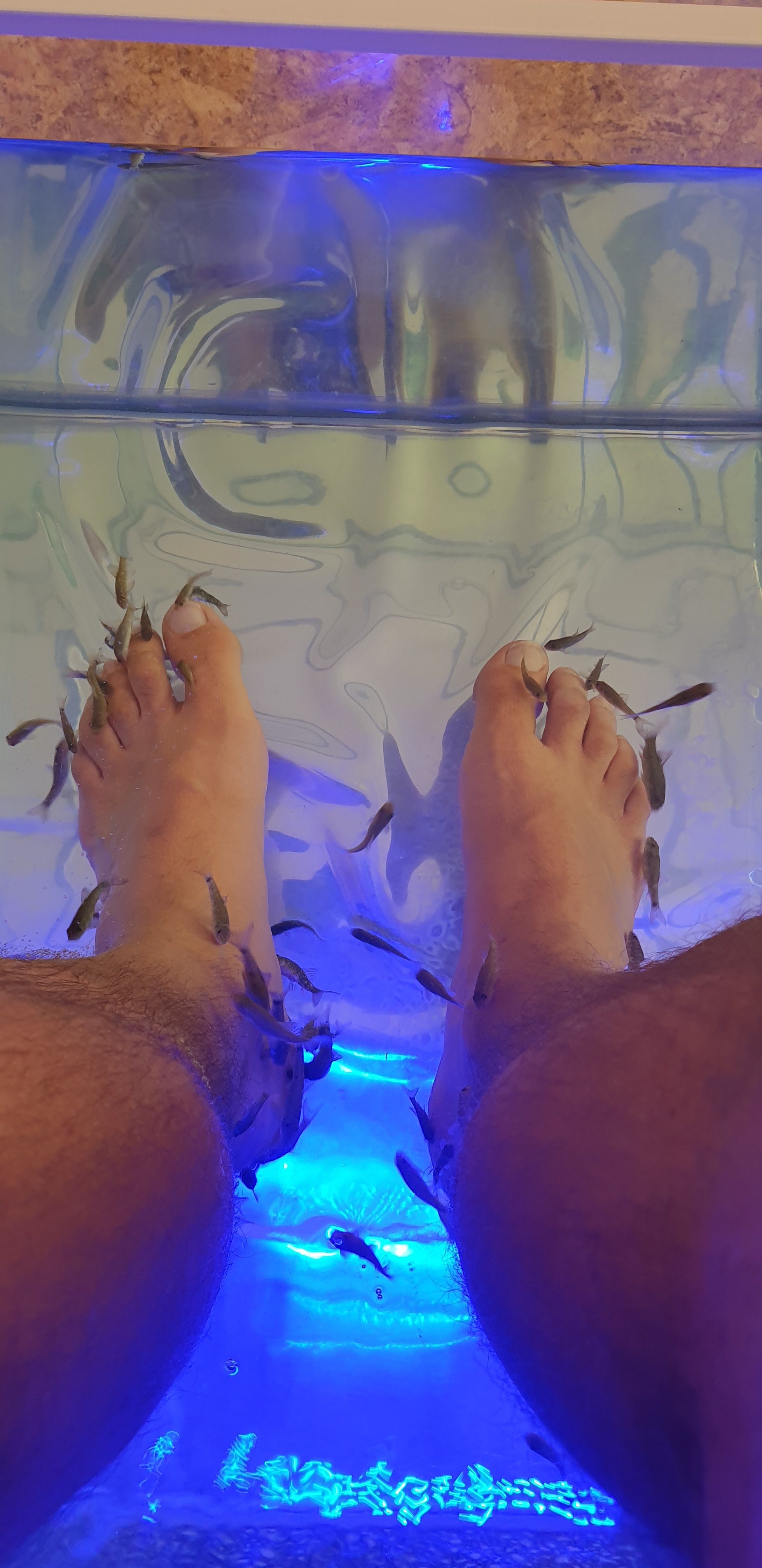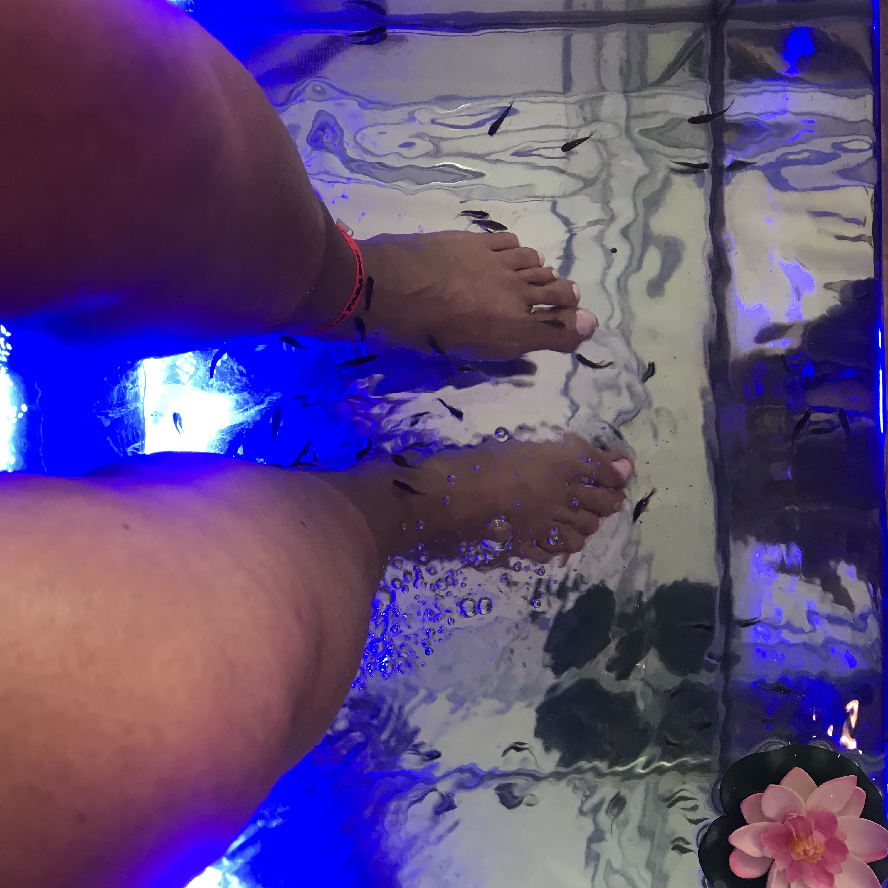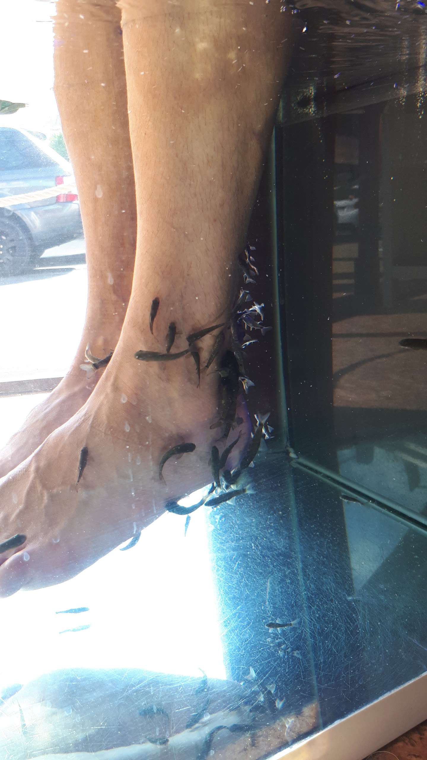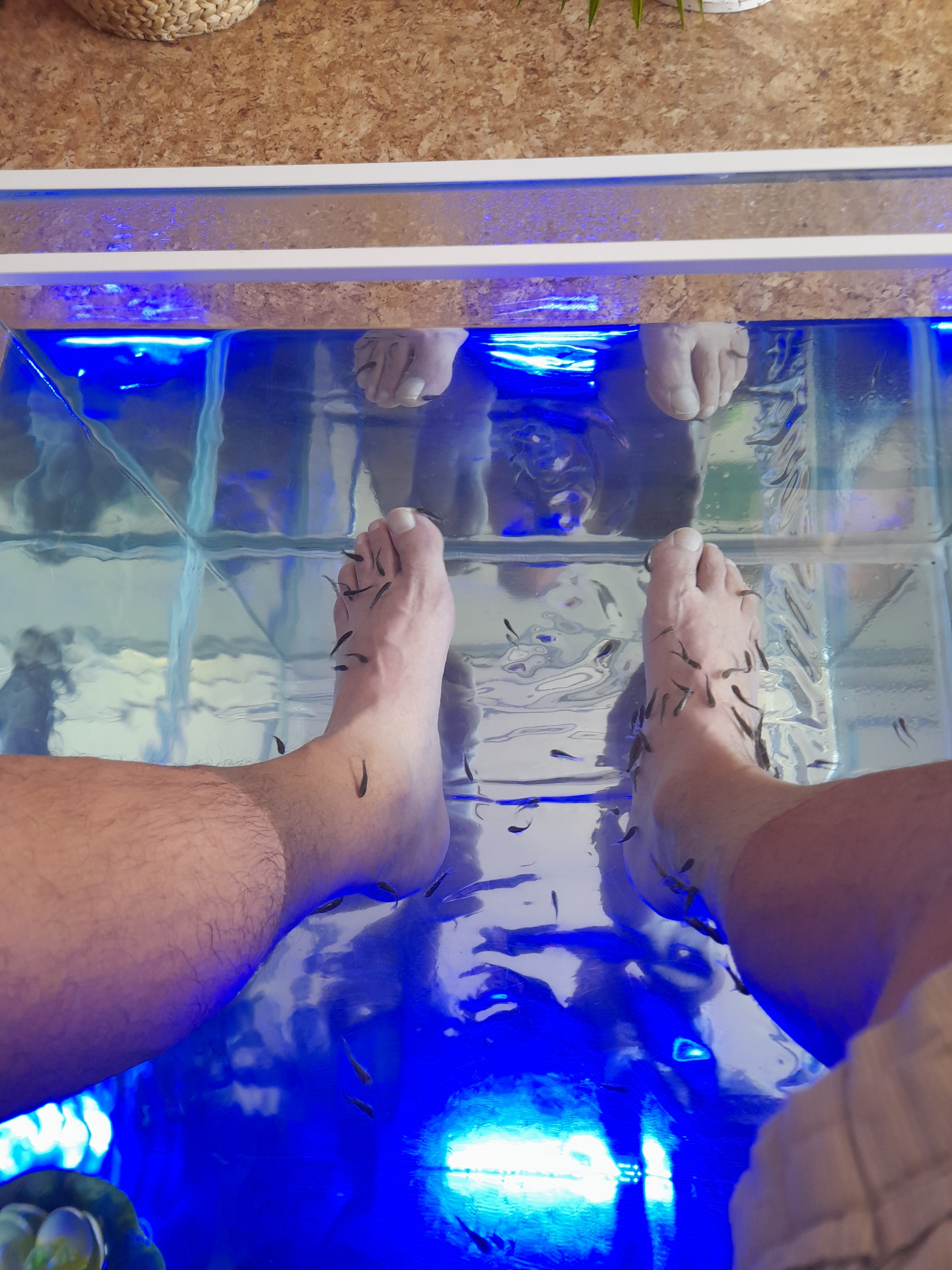 Massage des pieds par les poissons très agréable. Dommage que cela se passe à la vue de tout le monde